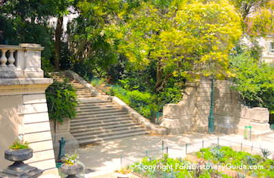 Turn off Rue Linné onto Rue des Arènes and almost immediately look on your left for a gate through the green fence leading to a children's playground and a discovery theme garden named L'illusion - this is Square Capitan.